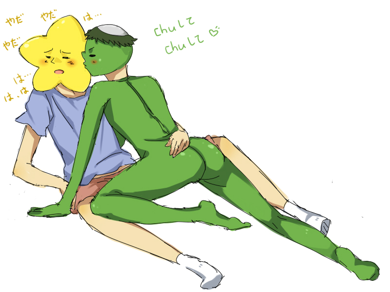 村长和星星可以玩那种正面手抓手头顶头的游戏,设定河童的头顶是敏感带,村长被星星戳得气喘连连脸红红